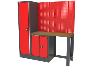 Kompaktowe i funkcjonalne stanowisko warsztatowe przeznaczone do organizacji pracy w warsztatach, garażach i punktach serwisowych. Zestaw składa się z solidnych elementów modułowych – zapewniających trwałość, wygodę użytkowania oraz optymalną przestrzeń roboczą.