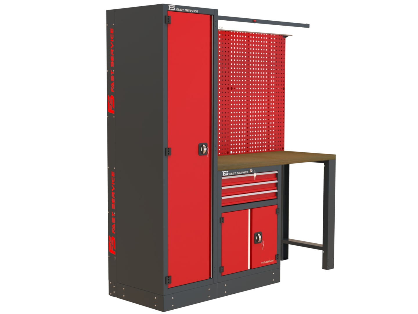 Kompaktowe i funkcjonalne stanowisko warsztatowe przeznaczone do organizacji pracy w warsztatach, garażach i punktach serwisowych. Zestaw składa się z solidnych elementów modułowych – zapewniających trwałość, wygodę użytkowania oraz optymalną przestrzeń roboczą.