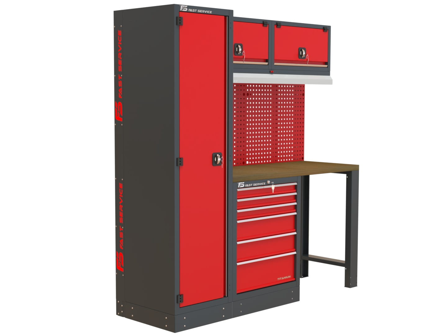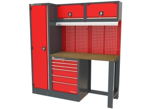 Kompaktowe i funkcjonalne stanowisko warsztatowe przeznaczone do organizacji pracy w warsztatach, garażach i punktach serwisowych. Zestaw składa się z solidnych elementów modułowych – zapewniających trwałość, wygodę użytkowania oraz optymalną przestrzeń roboczą.