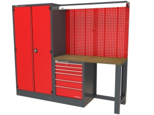Kompaktowe i funkcjonalne stanowisko warsztatowe przeznaczone do organizacji pracy w warsztatach, garażach i serwisach technicznych. Zestaw składa się z solidnych elementów modułowych, zapewniających trwałość, ergonomię oraz wygodną przestrzeń roboczą.